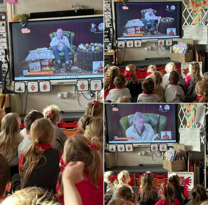Reception children are enjoying a very special live session with the amazing author Michael Rosen this morning. They are listening to his wonderful performance poetry- we especially enjoyed his famous ‘Chocolate Cake’ performance.
