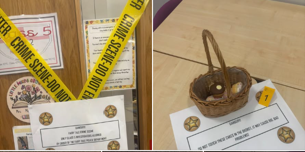 Class 5’s classroom had been turned into a fairytale crime scene this morning. The children had to use their detective skills and look at the evidence to work out which fairytale criminals had been in the classroom.